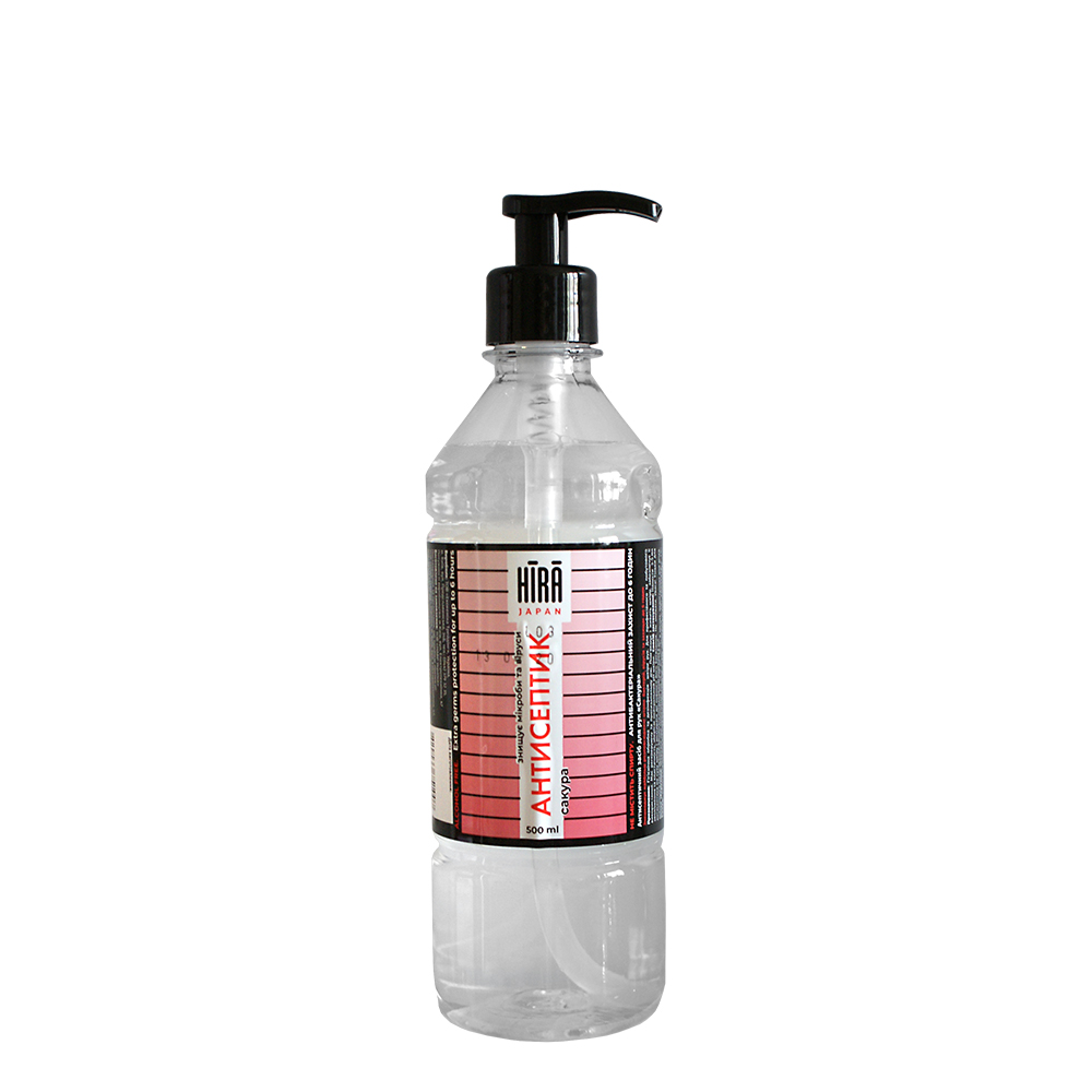 Антисептик для рук з дозатором з ароматом "Сакура" 500 мл від ТМ HIRA. Має сильну антимікробну дію завдяки присутності в складі розчину солі полігексаметиленгуанідина гідрохлорида (ПГМГ-ГХ). Застосовується для профілактики захворювань, що мають контактний механізм передачі інфекції. Рекомендовано для дезінфекції шкіри рук і шкірних покривів, в тому числі у дітей різного віку.
