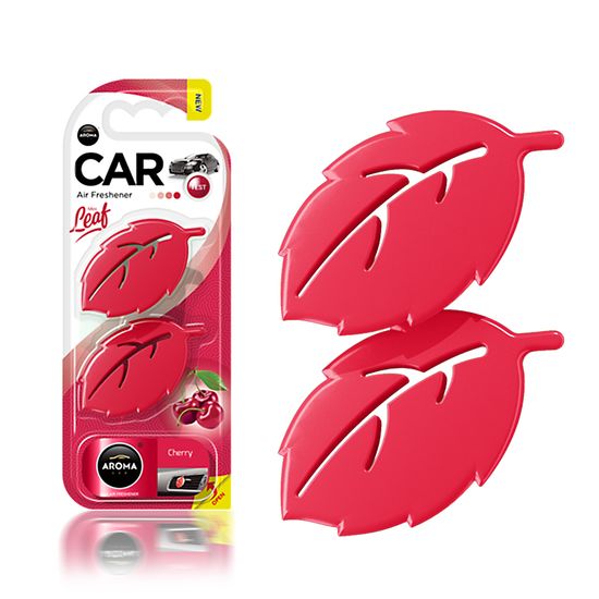 Ультрасучасний полімерний ароматизатор повітря Aroma Car із серії Leaf 3D mini, виконаний у формі двох маленьких листочків дерева, призначений для закріплення за допомогою кліпси на вентиляційну решітку обдування автомобіля. Ароматизатор має приємний аромат Cherry (Вишня).