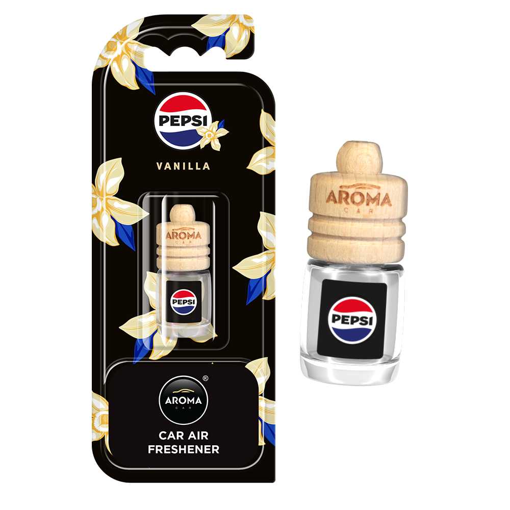 Автомобільний ароматизатор Aroma Car PEPSI Wood - Vanilla- це свіжий аромат популярного напою PEPSI, що бадьорить, із ароматом ванілі, який нагадає вам про ваш літній відпочинок і перенесе вас на теплий і сонячний пляж з холодною ароматною пляшечкою PEPSI. Ніжний, ненав'язливий аромат не відволікає водія та допомагає розслабитись під час тривалої поїздки.