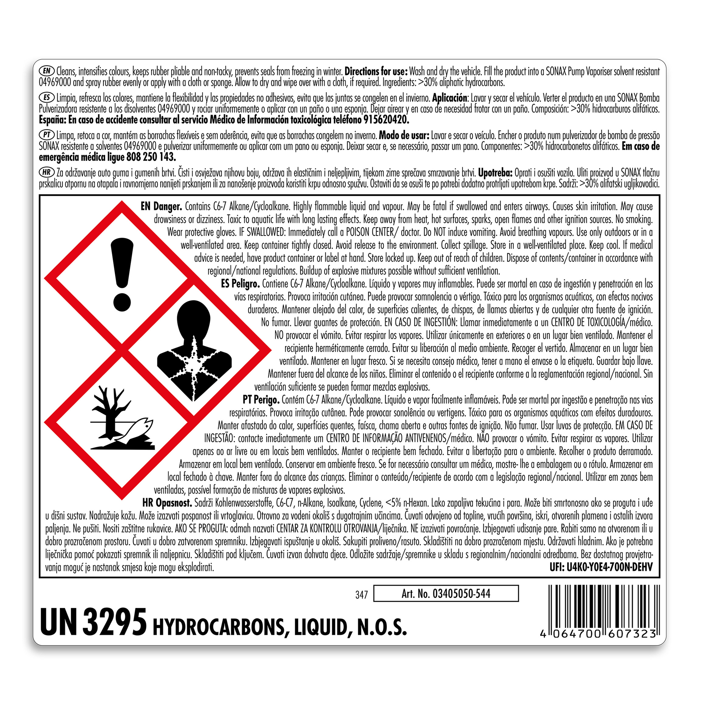 - Залийте в стійкий до розчинників помповий розпилювач SONAX Pump vaporiser і рівномірно розпиліть або нанесіть серветкою з мікрофібри або губкою.