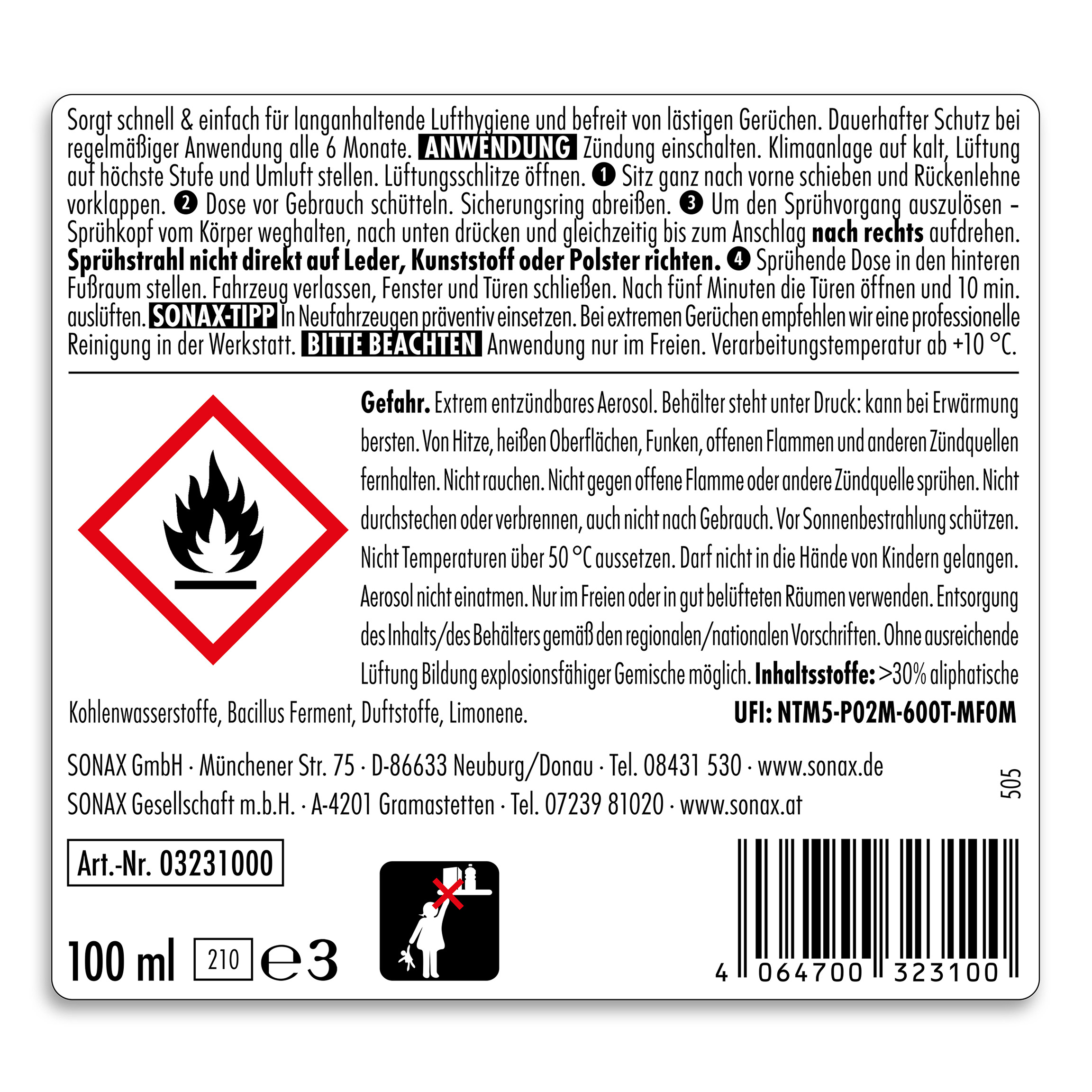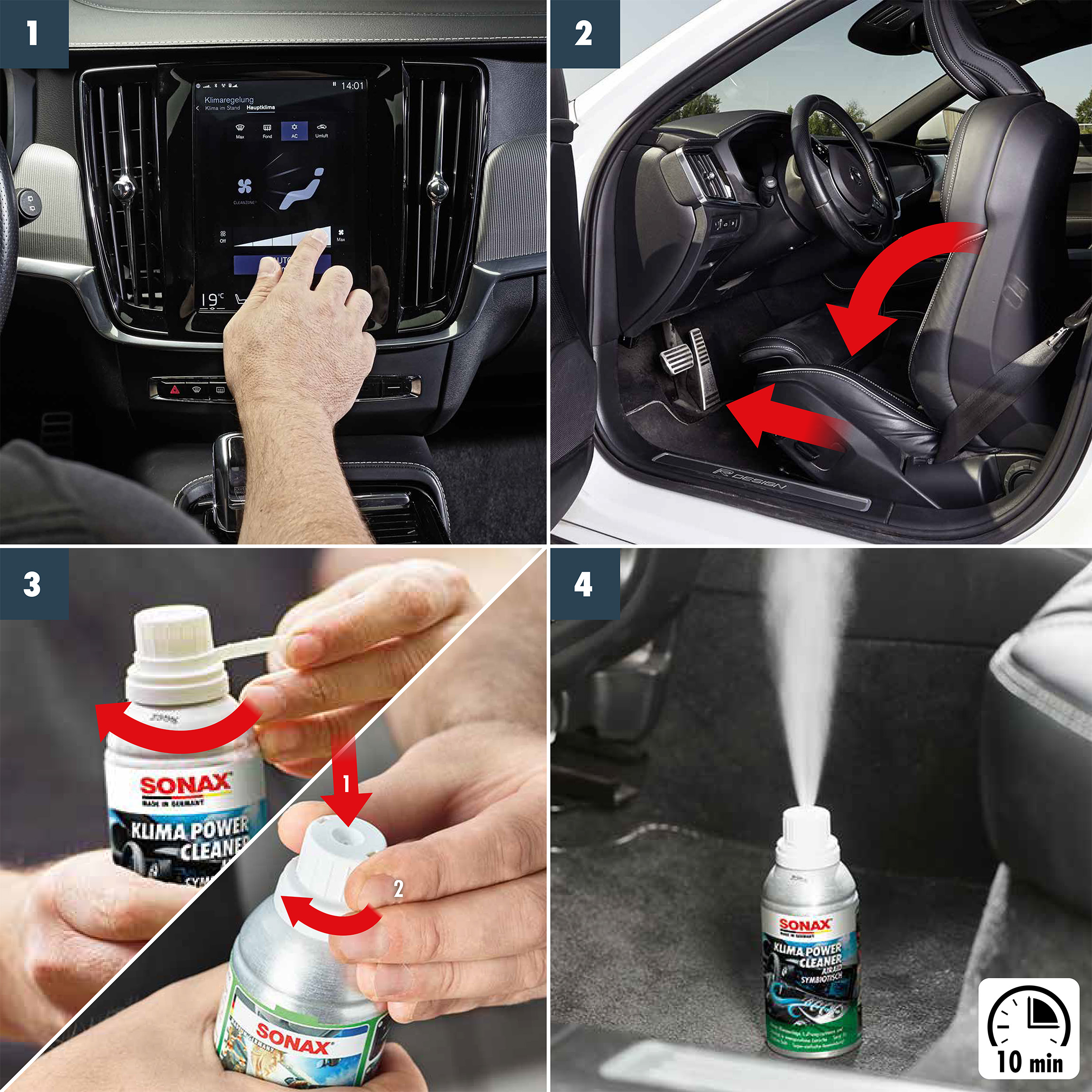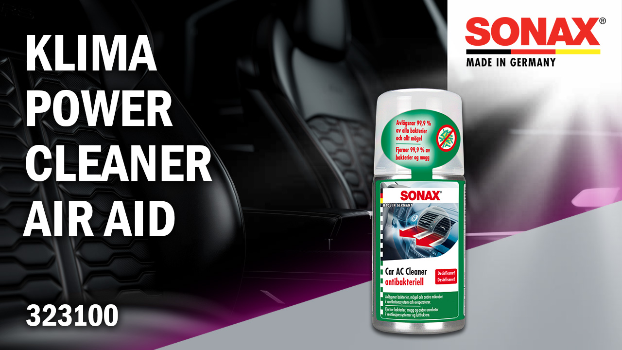 - Збовтайте перед застосуванням балончик SONAX KlimaPowerCleaner AirAid.