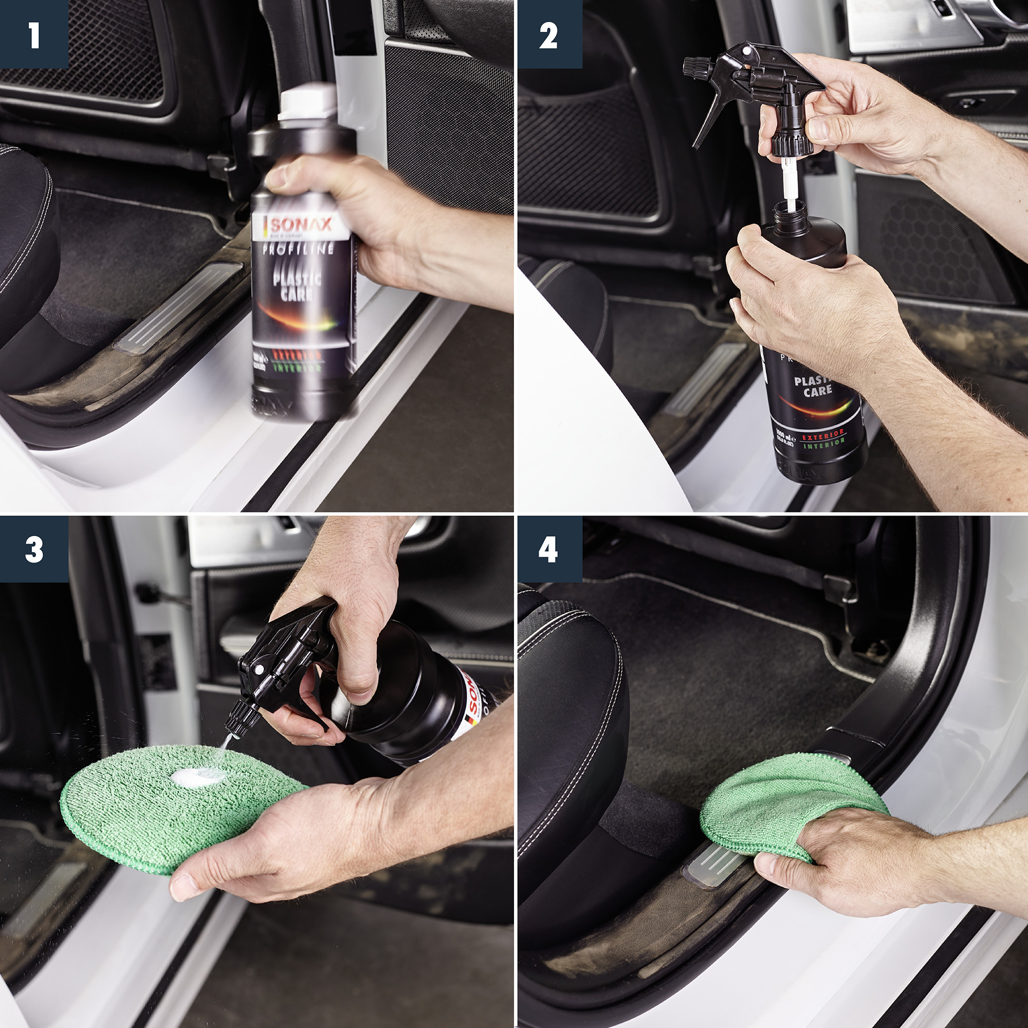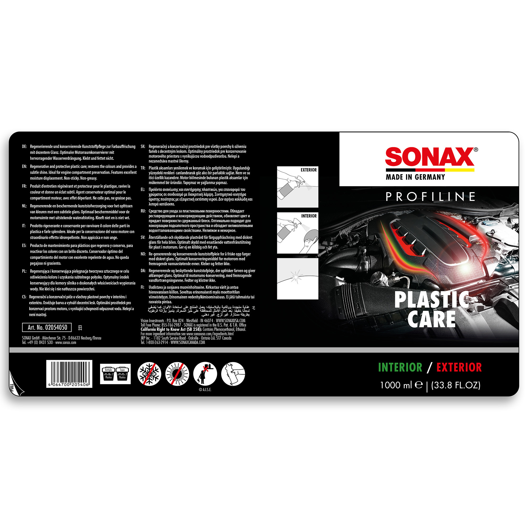 Професійний засіб по догляду за пластиком SONAX PROFILINE Plastic Care (205405) рекомендовано для використання на автомийках, в детейлінгових центрах та інших місцях, де займаються миттям, поліруванням та доглядом за автомобілем.