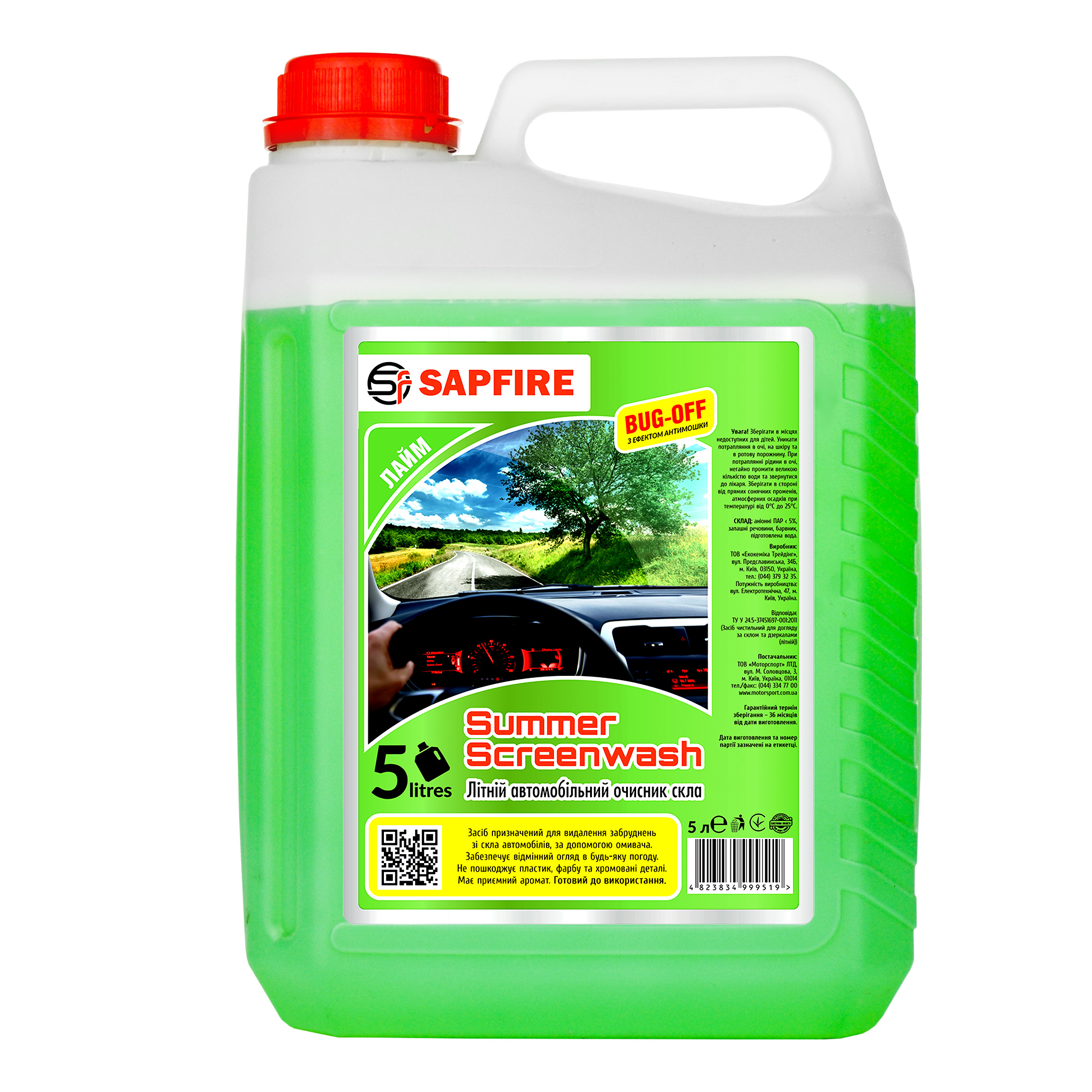Омивач скла літній (антімошка) SAPFIRE 5 л - лайм (999519)