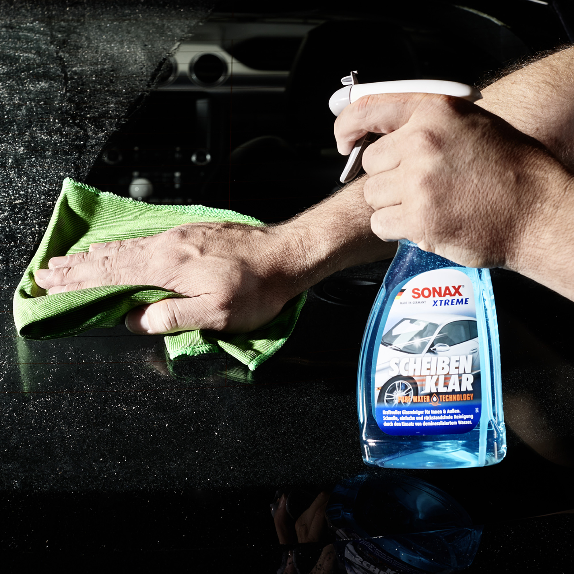 - Нанесіть тонкий шар на поверхні, що очищаються, і розподіліть м'яким паперовим рушником або серветкою з мікрофібри SONAX (416500).