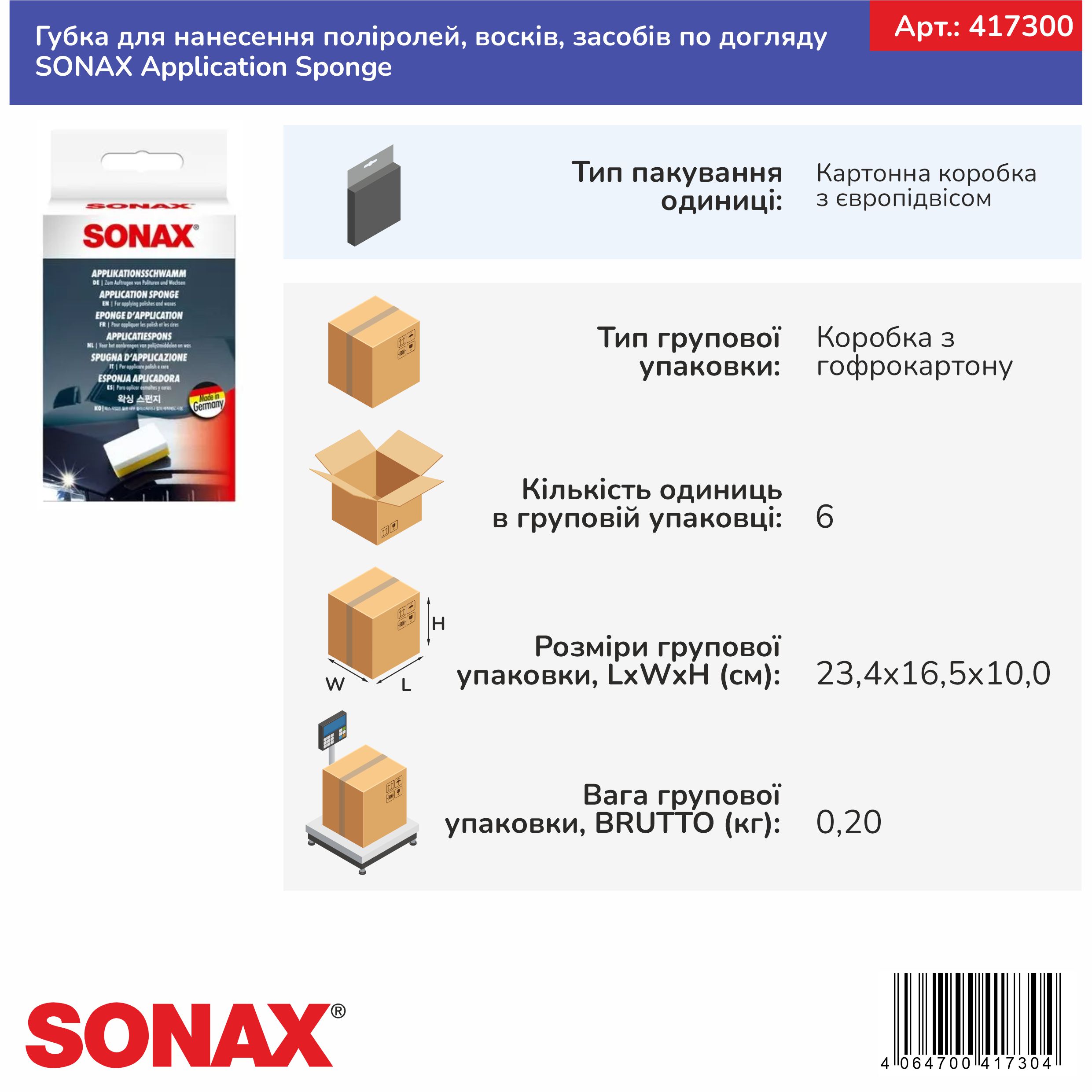 Губка для нанесення поліролей, восків, засобів по догляду SONAX Application Sponge (417300)