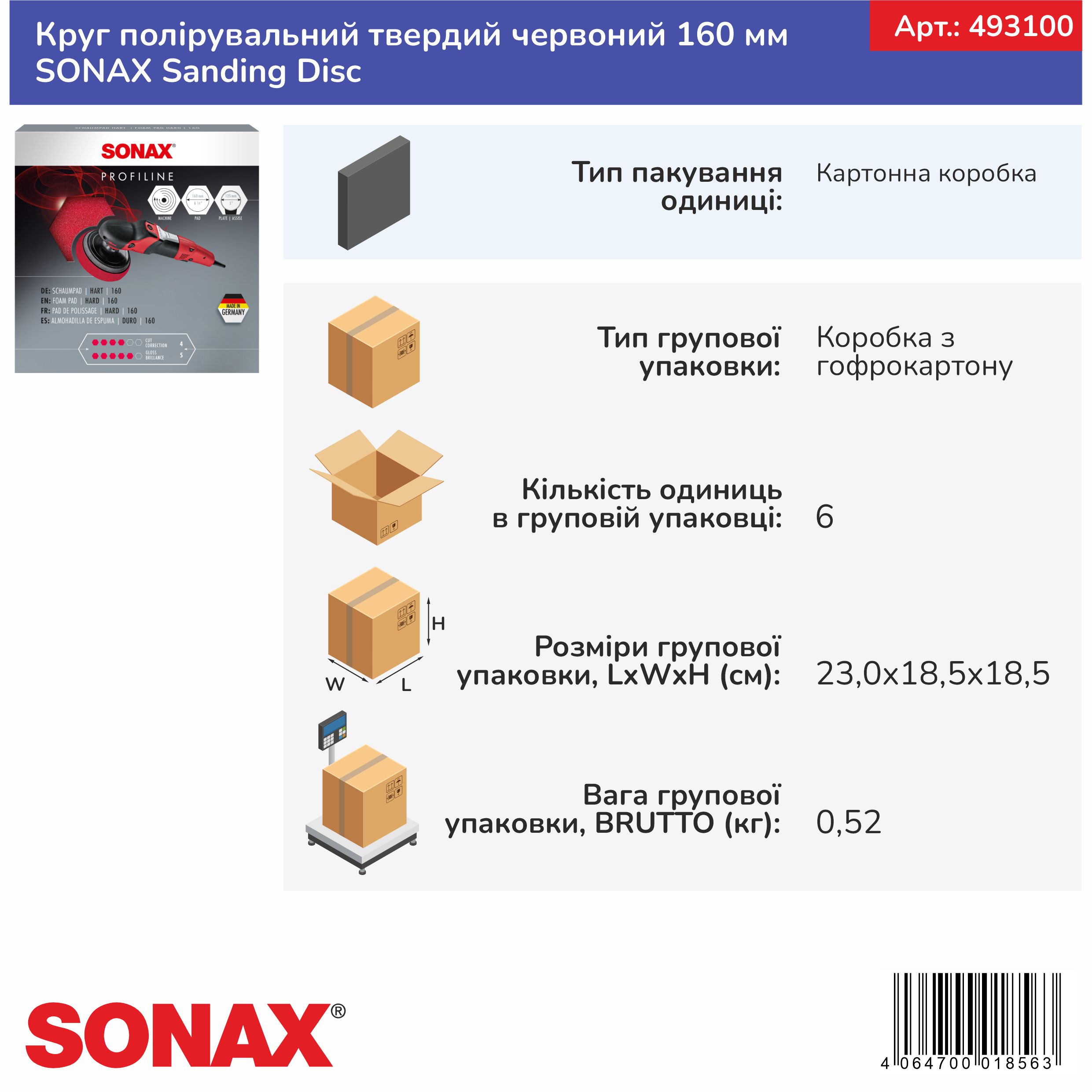 Круг полірувальний твердий червоний 160 мм SONAX Sanding Disc (493100)