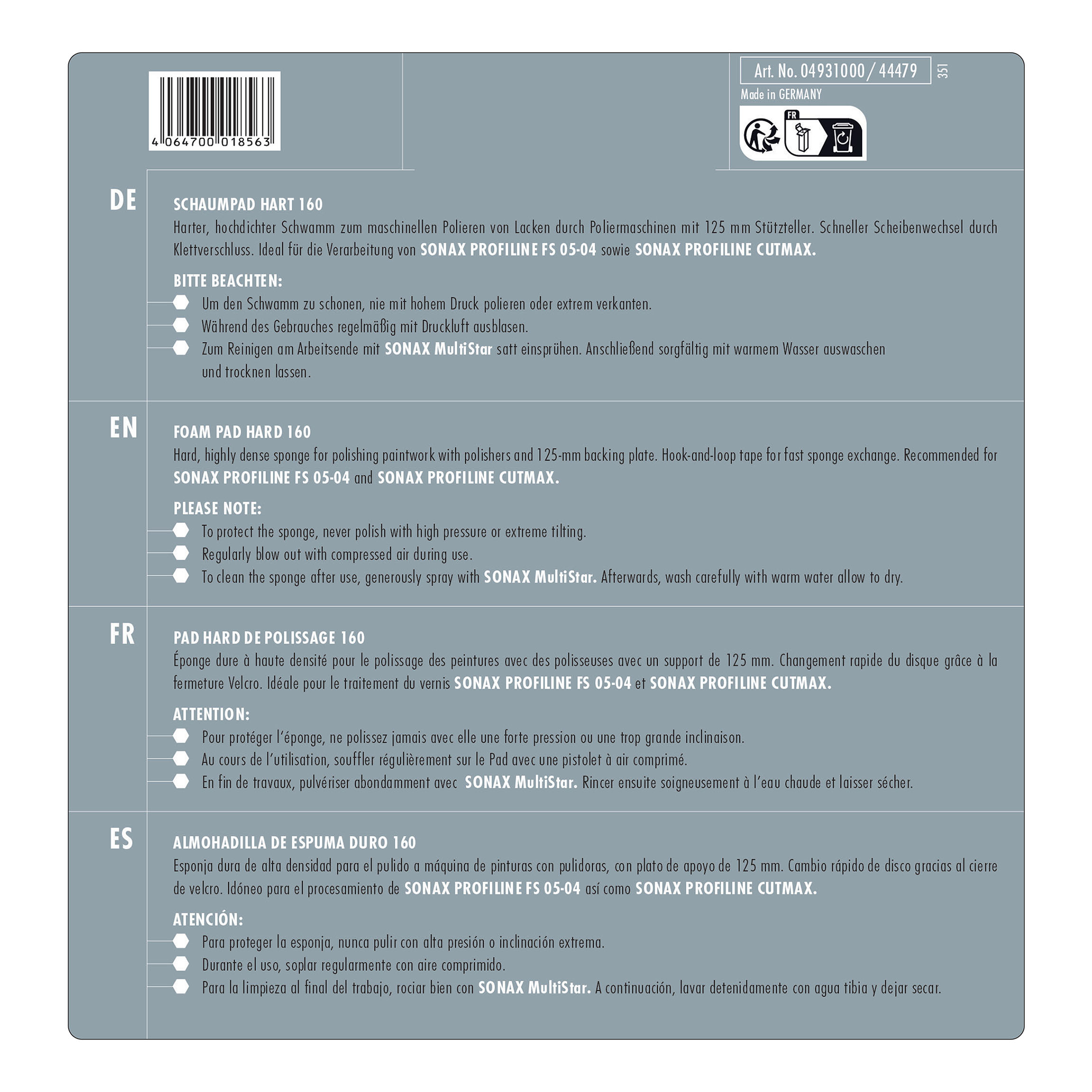 Круг полірувальний SONAX Sanding Disc (493100) з твердою мелкопористой структурою призначений для шліфування та полірування подряпаного і обвітреного лакофарбового покриття автомобілів за допомогою ротаційних (обертових) полірувальних машинок.