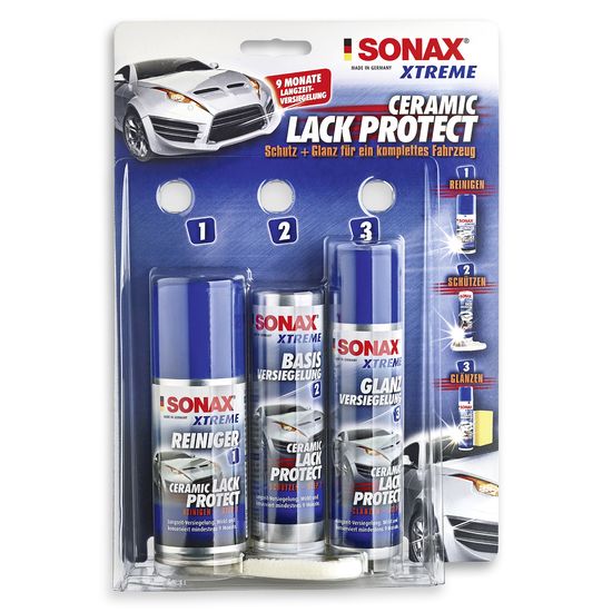 Набір SONAX XTREME Ceramic Lackprotect (247941) дозволяє захистити фарбу автомобіля керамікою (рідким склом). Керамічне покриття оптимально захищає кузов вашого автомобіля, що значно зменшує вірогідність налипання бруду, комах та дорожньої солі. Ця властивість значно полегшує догляд за автомобілем. Прозора керамічна плівка посилює колір, вона стає ідеально гладкою з чудовим блиском.