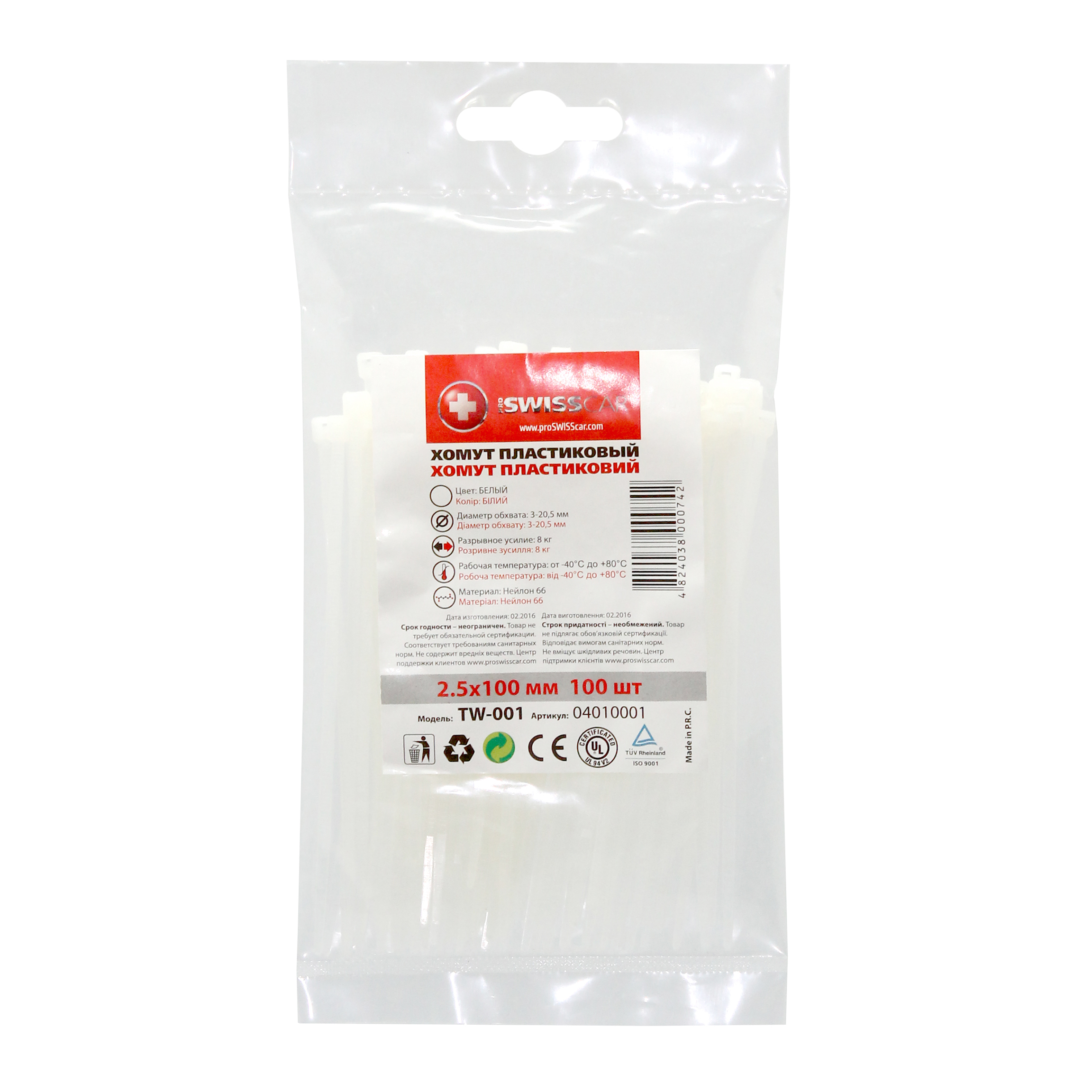 Хомут пластиковий 2,5х100 мм 100 шт білий TW-001 PROSWISSCAR (000742)