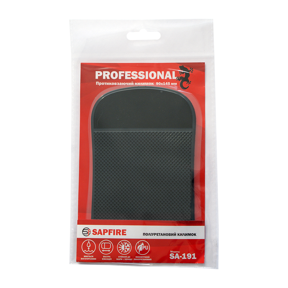 Протиковзаючий килимок SA-191 PROFESSIONAL від ТМ SAPFIRE використовується для закріплення або утримання телефону, смартфону, навігатора, окулярів і всякої дріб'язку на панелі приладів Вашого автомобіля, лодки тощо.