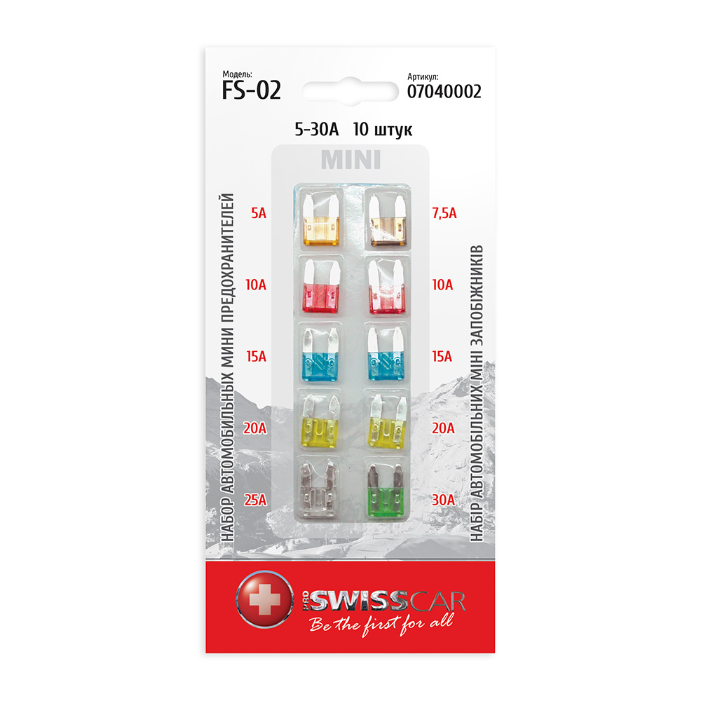 Набір автомобільних запобіжників MINI 5-30А 10 шт PROSWISSCAR FS-02 (001220)