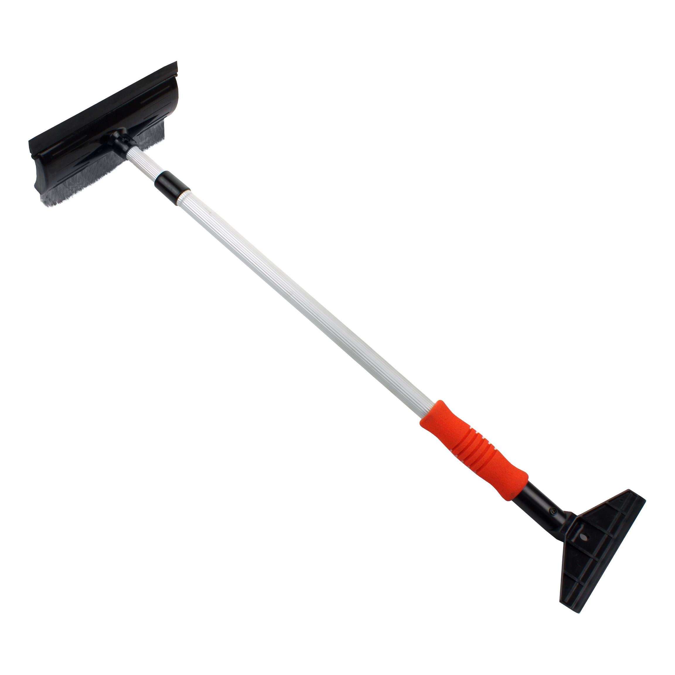 Щітка з водозгоном та скребком на телескопічній алюмінієвій ручці 72-122 см SAPFIRE (777779). Діаметр алюмінієвої трубки 20/22 мм. Ручка-тримач одноколірна, помаранчева, неопренова. Щетина щітки одноколірна, чорна, опушена довжиною 4,5 см, товщина ворсу щітки 20 мм. Довжина ворсової частини щітки – 20 см.