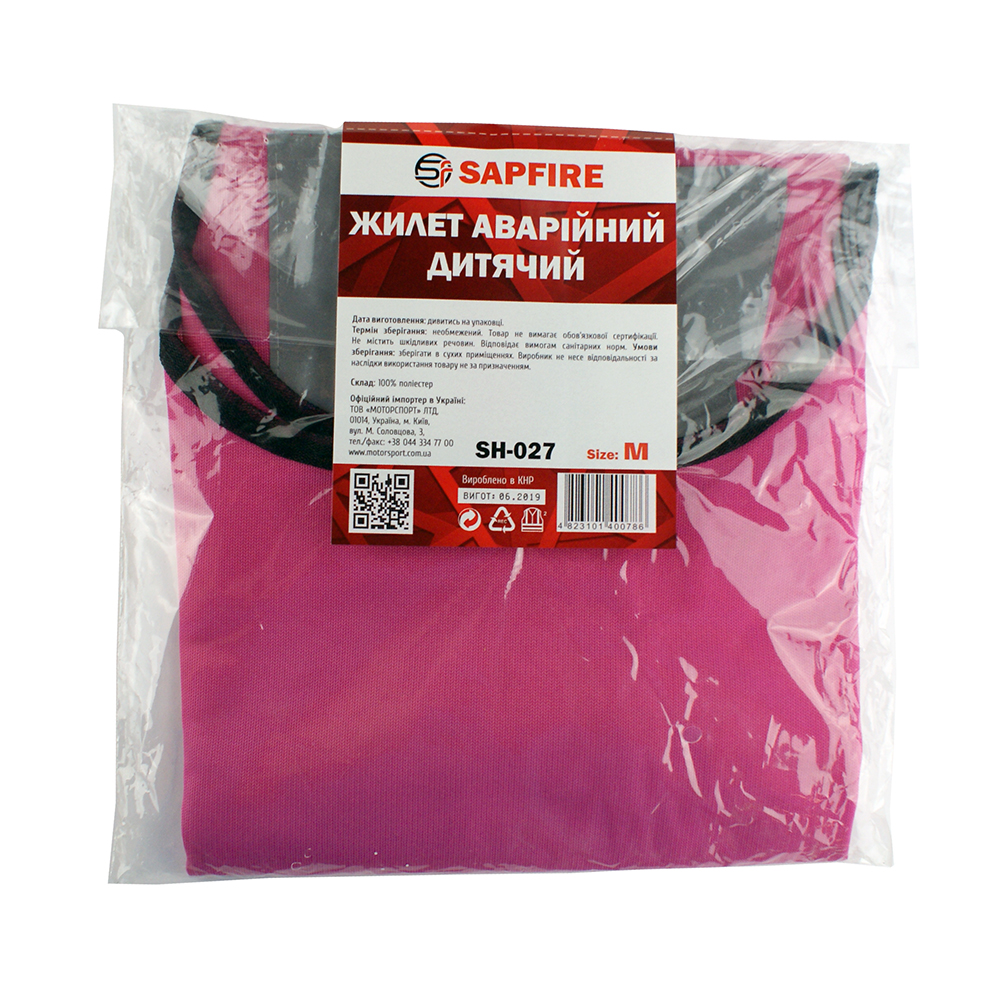 Жилет сигнальний дитячий M рожевий SH-027 SAPFIRE (400786)