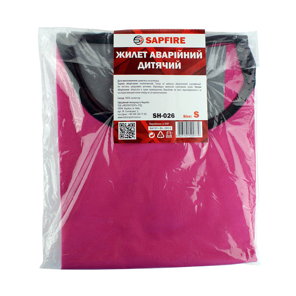 Жилет сигнальний дитячий S рожевий SH-026 SAPFIRE (400779)