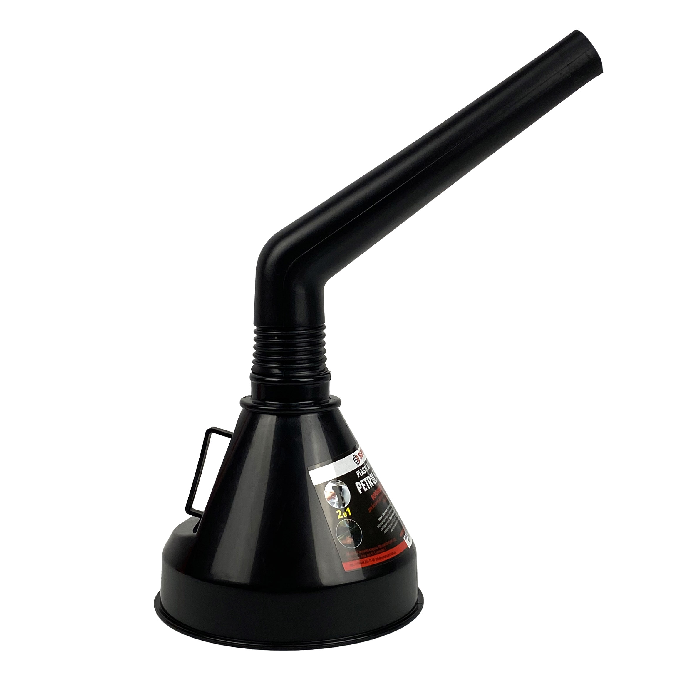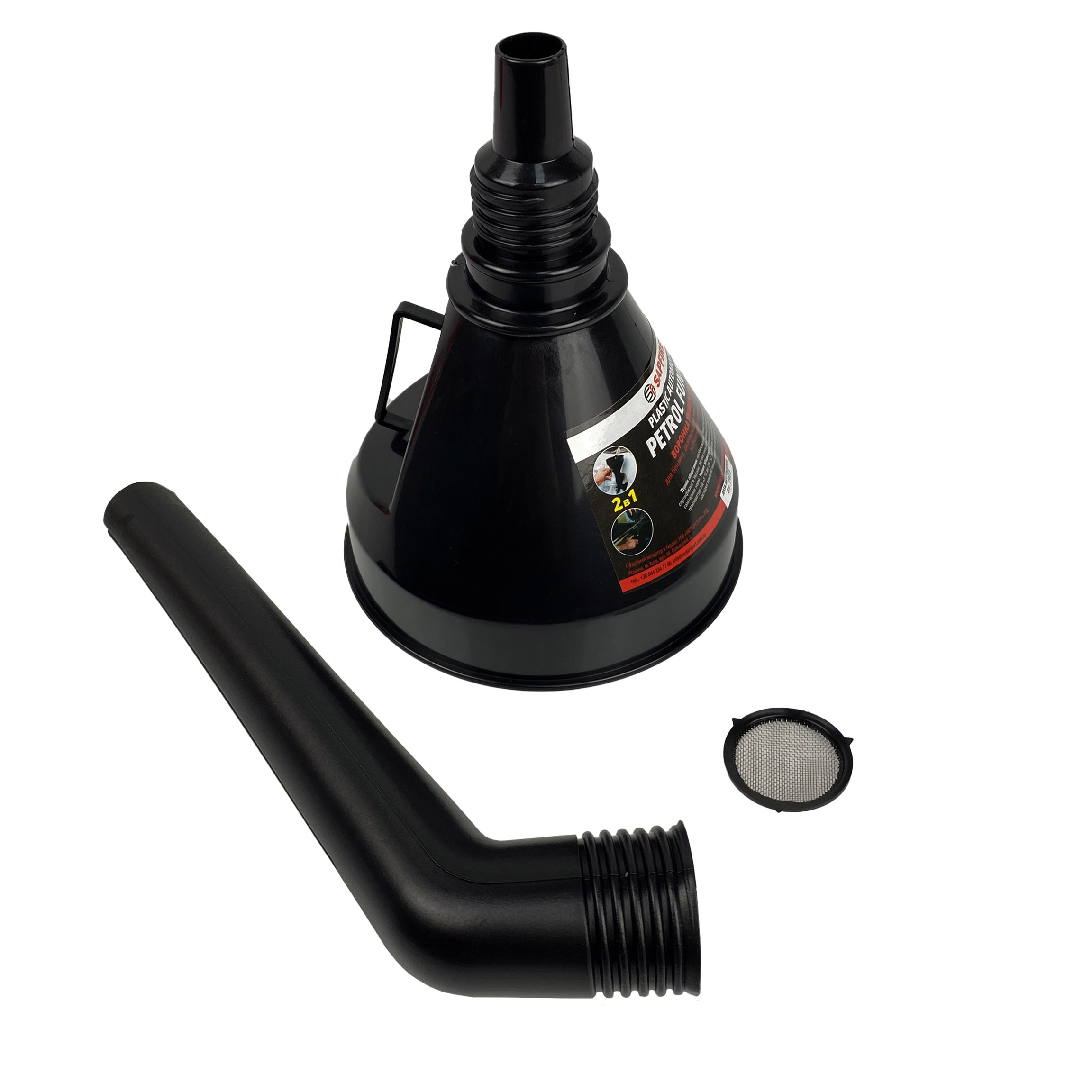 Пластикова воронка (лійка) 2 в 1 для паливно-мастильних матеріалів з жорстким носиком та металевим сітчастим фільтром SAPFIRE Plastic Automotive Petrol Funnel SA-121 (401424). Це чудова заміна незручним лійкам з гнучким носиком, які важко фіксувати при заправці палива в бак автомобіля. Жорсткий носик допоможе вам надійно зафіксувати лійку в горловині бака, а металевий фільтр запобіжить потраплянню бак сміття та води. Лійку зі знятим носиком зручно використовувати для переливу палива між каністрами або в горизонтальні горловини.