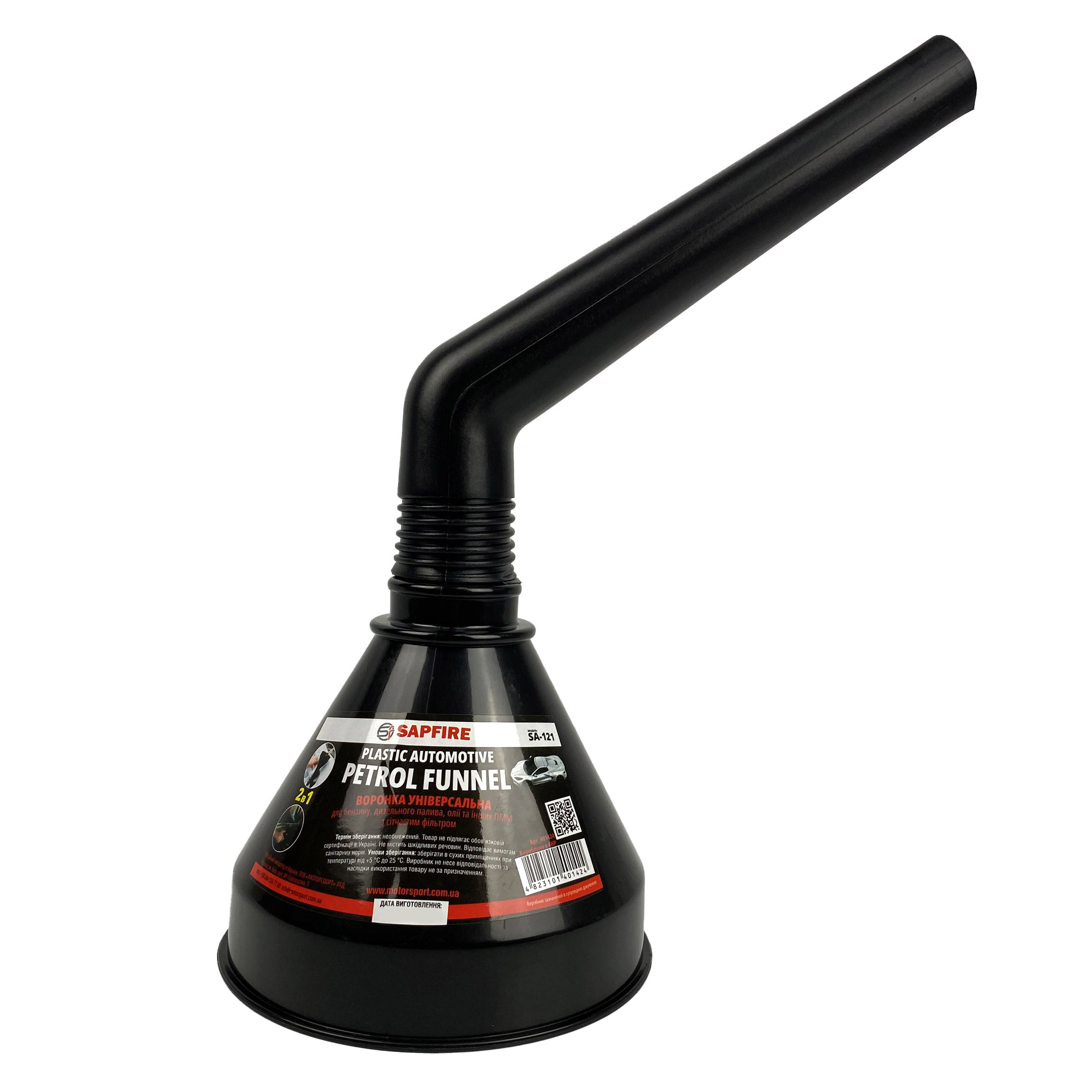 Воронка універсальна для бензину, дизильного палива, олії та інших ПММ з сітчастим фільтром (чорна) SA-121 SAPFIRE Plastic Automotive Petrol Funnel (401424)