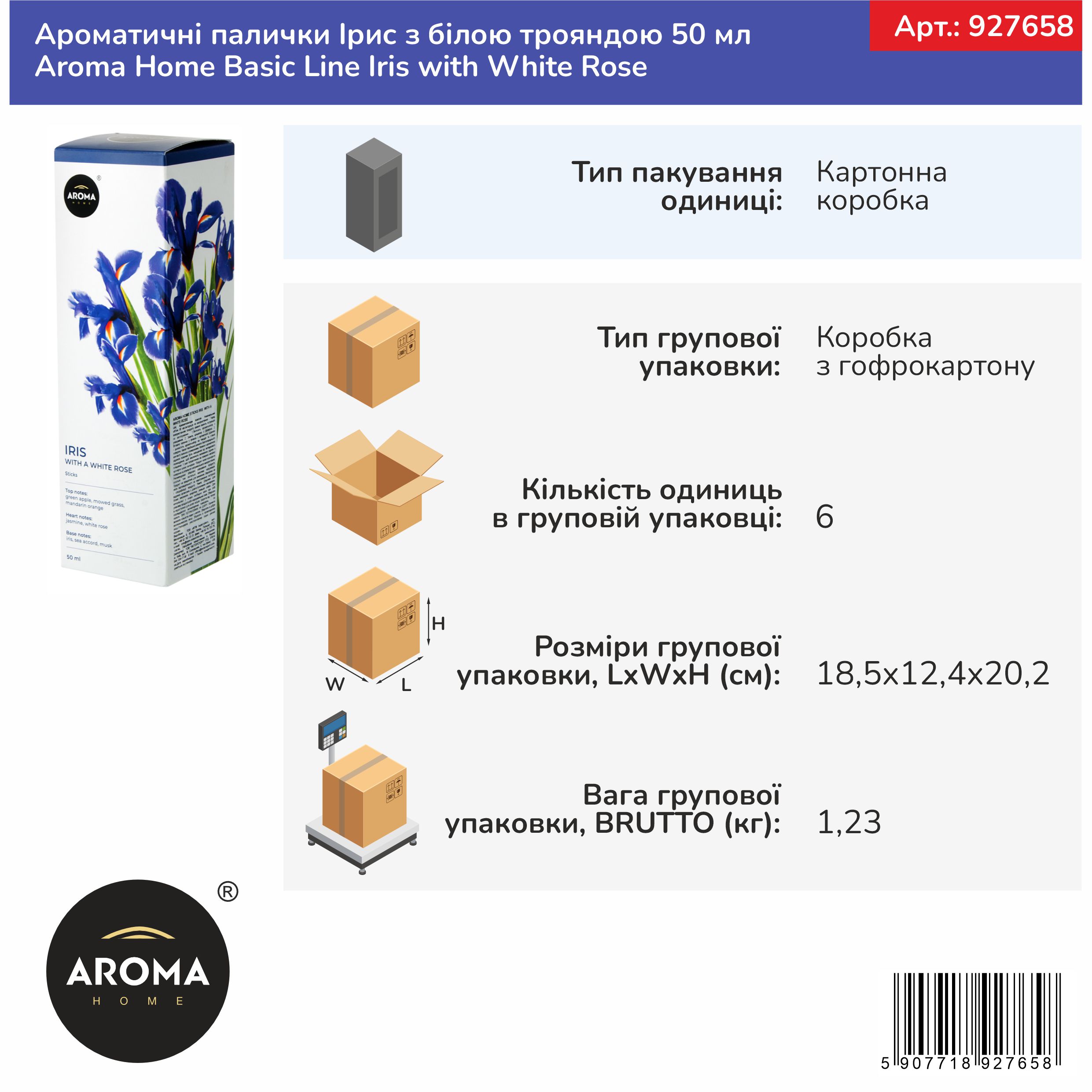 Ароматичні палички Ірис з білою трояндою 50 мл Aroma Home Basic Line Iris with White Rose (927658)