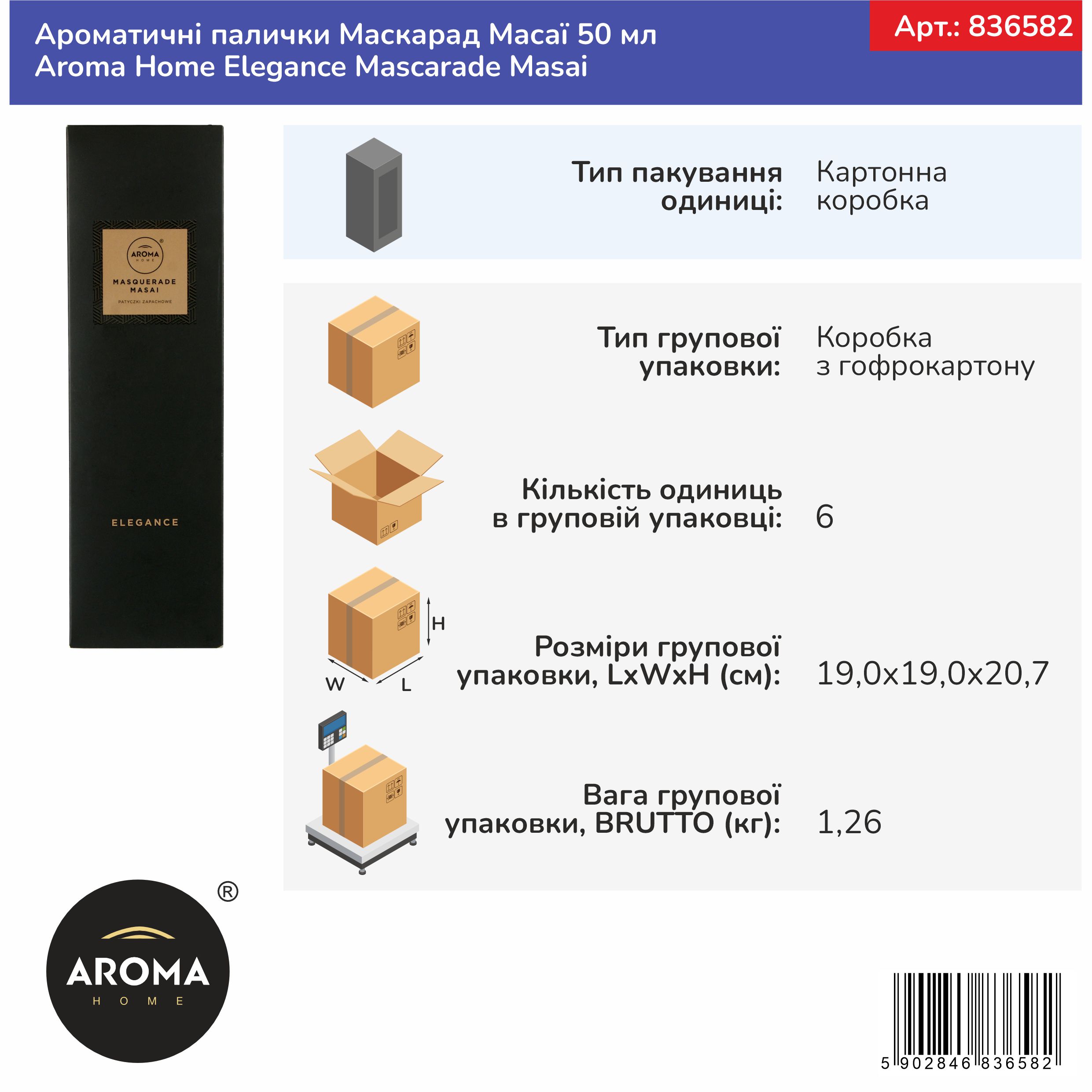 Ароматичні палички Маскарад Масаї 50 мл Aroma Home Elegance Mascarade Masai (836582)